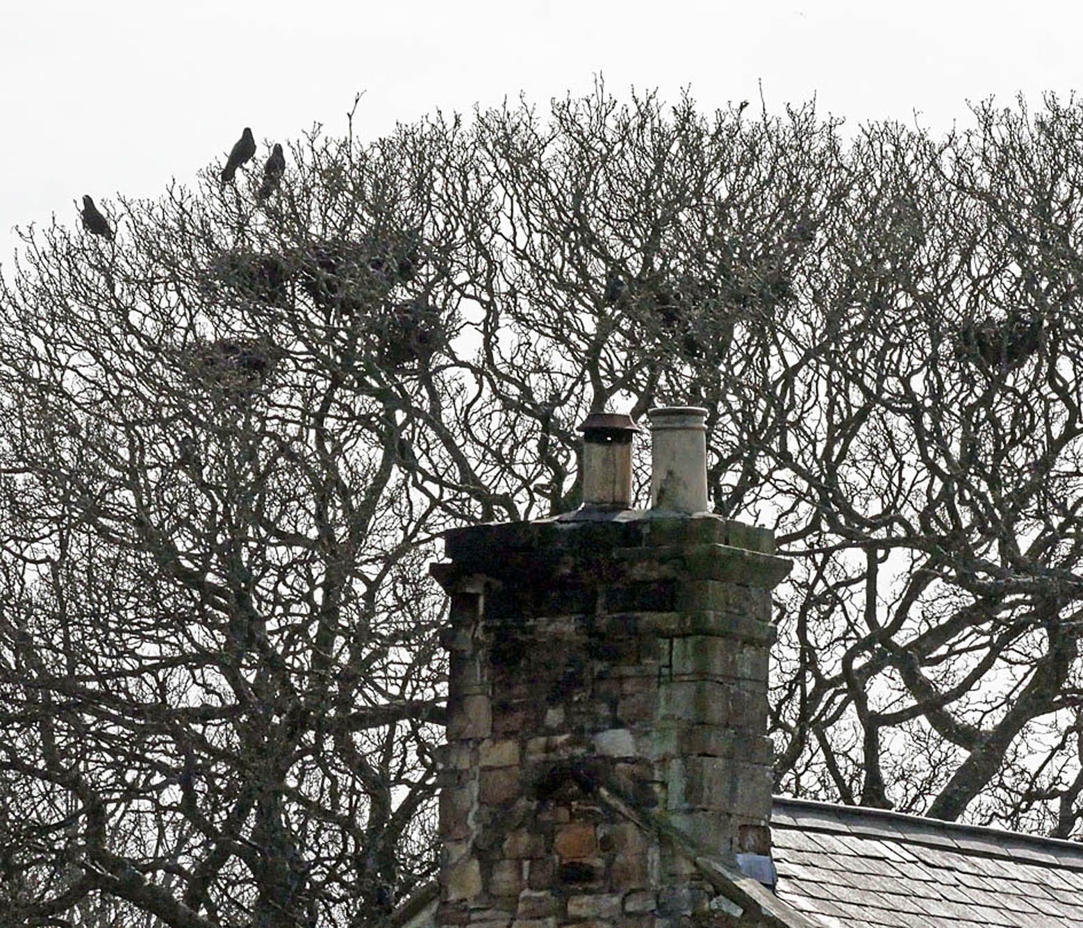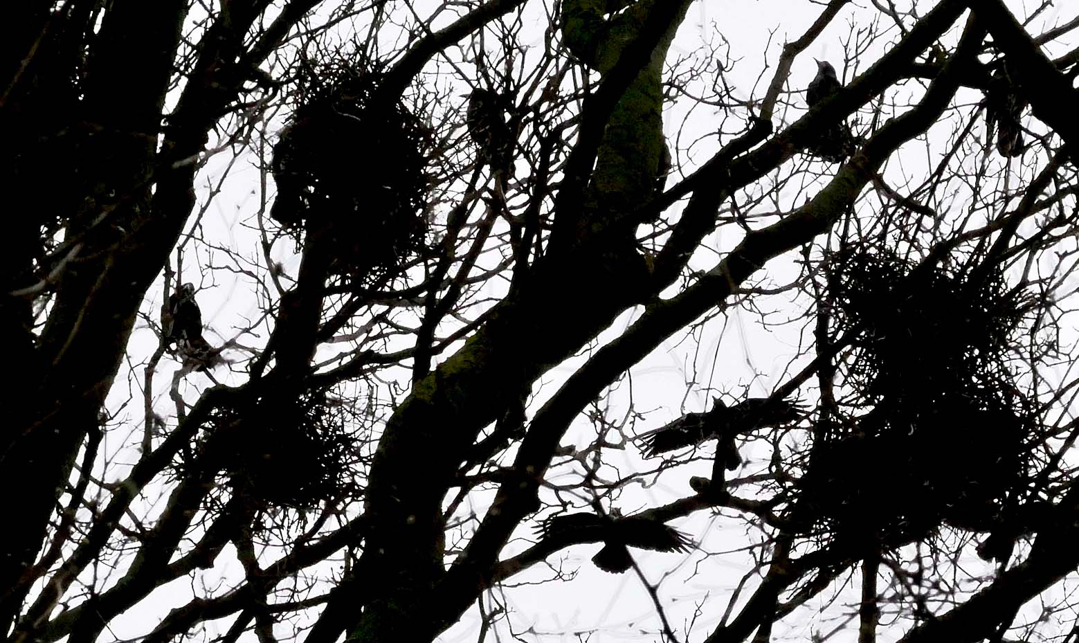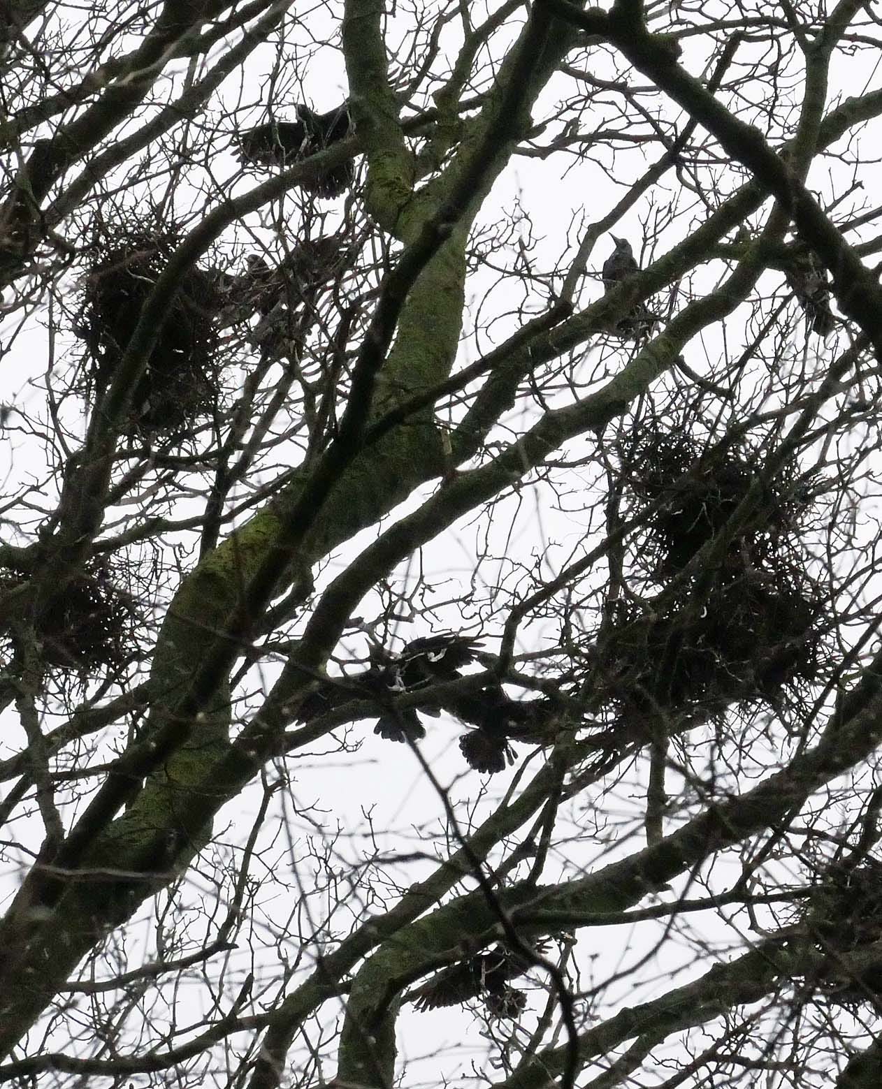 This is one of my favourite rookeries, with about a dozen nests high in the sycamores on the steep bank of the River Wear at Wolsingham, a few miles from home, and at this time of year it’s a cacophony of raucous cawing from rooks returning to their nests.